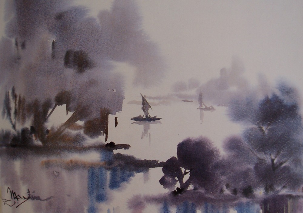 多年後,我的兒子顥已經十三歲了,一天晚上,在電視的訪問節目中,顥看到靳老師及他的作品,非常喜愛。不久,他有幸在靳老師的百會畫苑學習繪畫,甘心做徒孫!兩年後,我公司調派我往總公司工作,我全家搬到美國新澤西去。臨別時,師公對小兒說:「你的繪畫功力,已經可以勝過很多人了,不過要繼續努力,方可大成。」後來,顥在美國中學唸書,得到無數繪畫的獎品。 靳老師數年前已經去世,但他大師級的作品將會永留人間,供人欣賞。他在美術教育中,桃李滿門,蜚聲國際。誨人不倦的精神,亦會為人津津樂道,永垂不朽。而他掛在臉上的笑容,永遠留在我的心坎中。 |